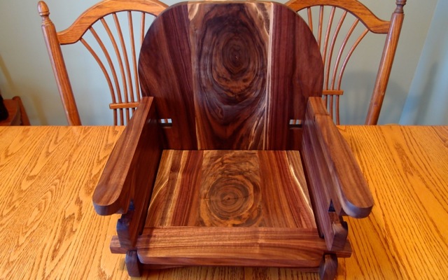 Here is the finished seat planed, cut, and rough sanded. With the crazy grain had a lot of trouble with pull out using the plane so resorted to a good bit of belt sander action.