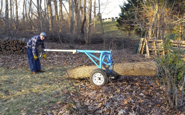 One of the key tools that make this whole venture workable is our log arch. There is no other way we could move these logs about with such ease. A toast to combining two simple machines; lever and wheel, into an effective package.